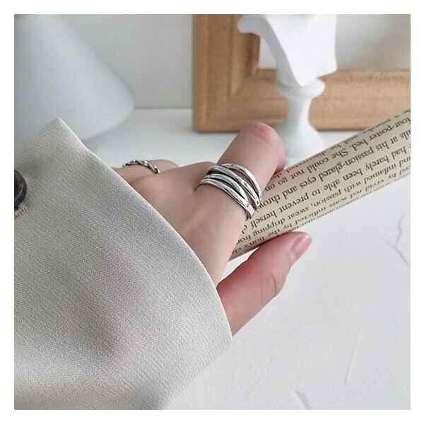 ●1色!シルバー925 ランダム4連風ワイド オープンリング